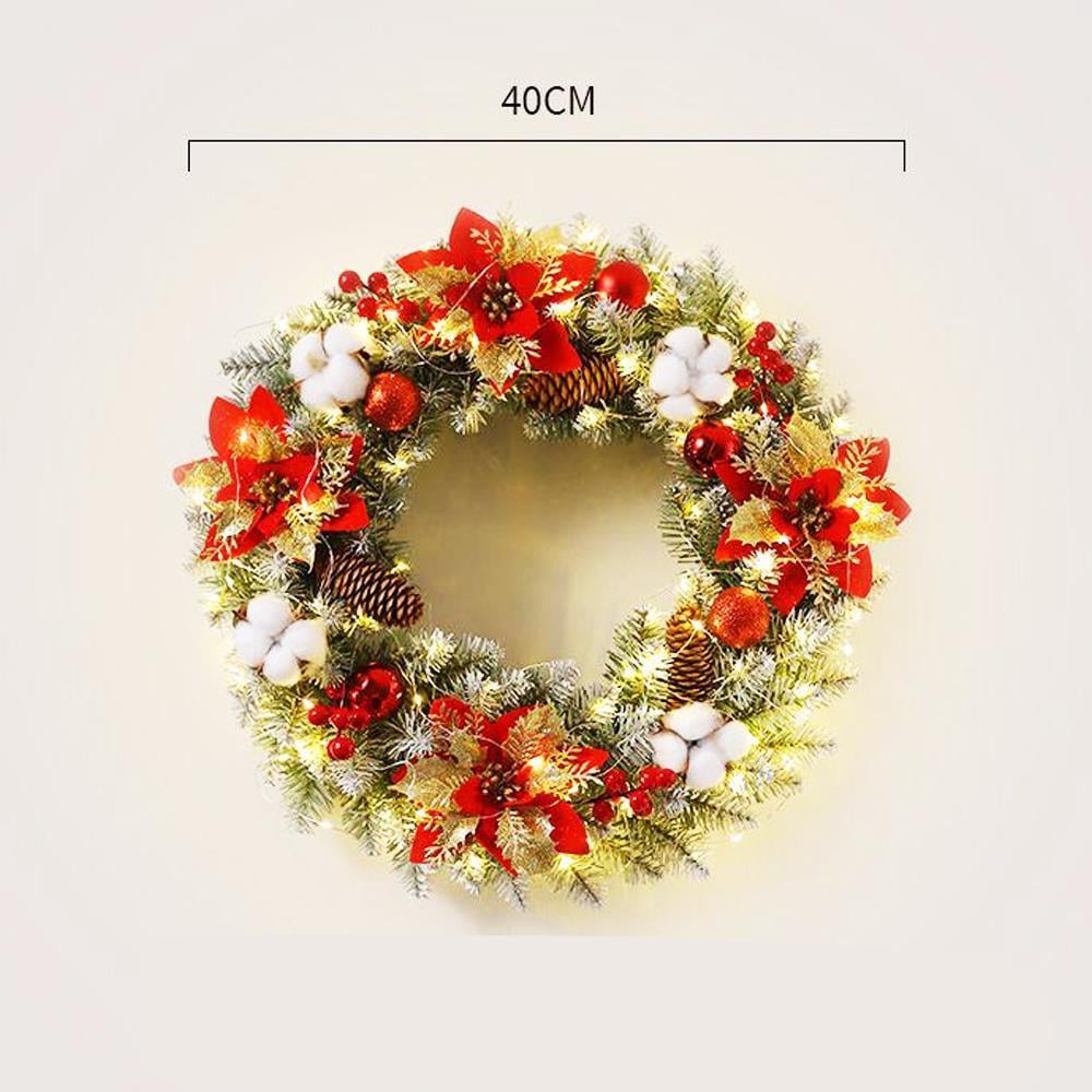 1 Adet 40cm Yılbaşı Kapı Süsü Led ışıklı Kırmızı Çiçekli Pamuklu