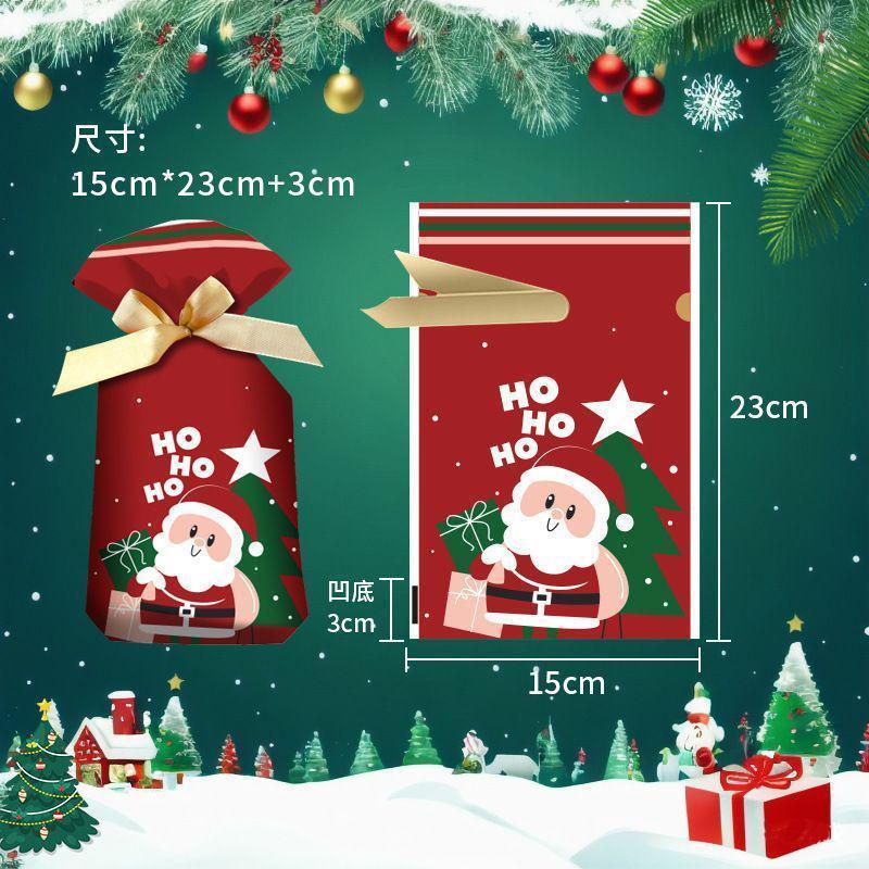 10 Adet 15X23cm Plastik Torba Kurdelalı Yılbaşı Noel Naba Kırmızı (MDM03970)