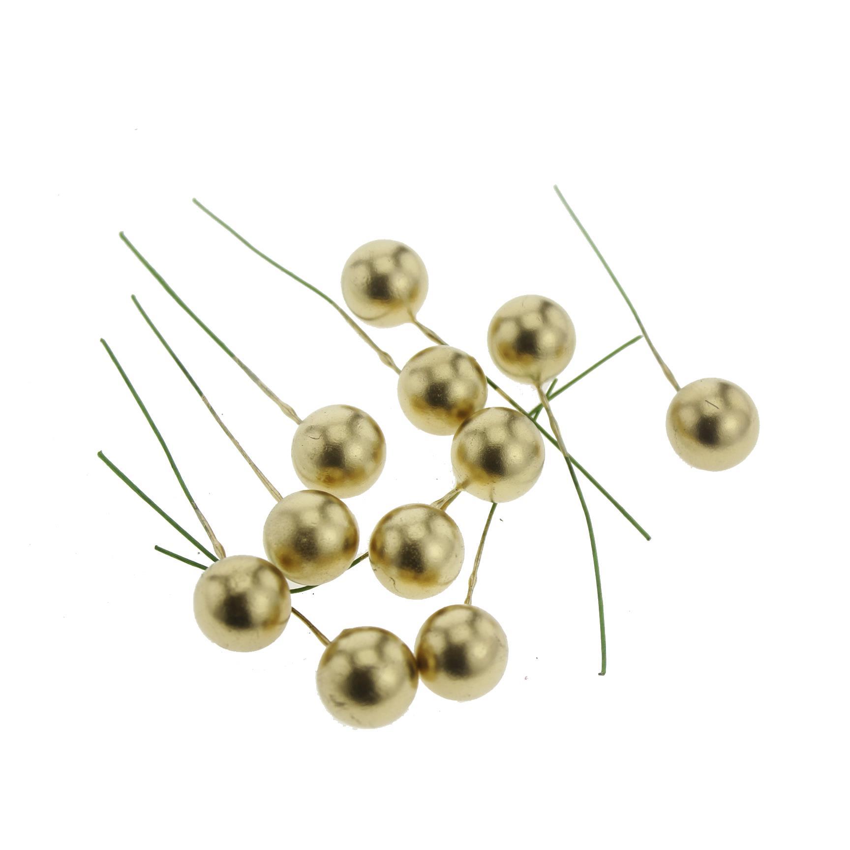 10 Adet Berry Çiçek Tekli Strafor İnci Altın (MDM03161)