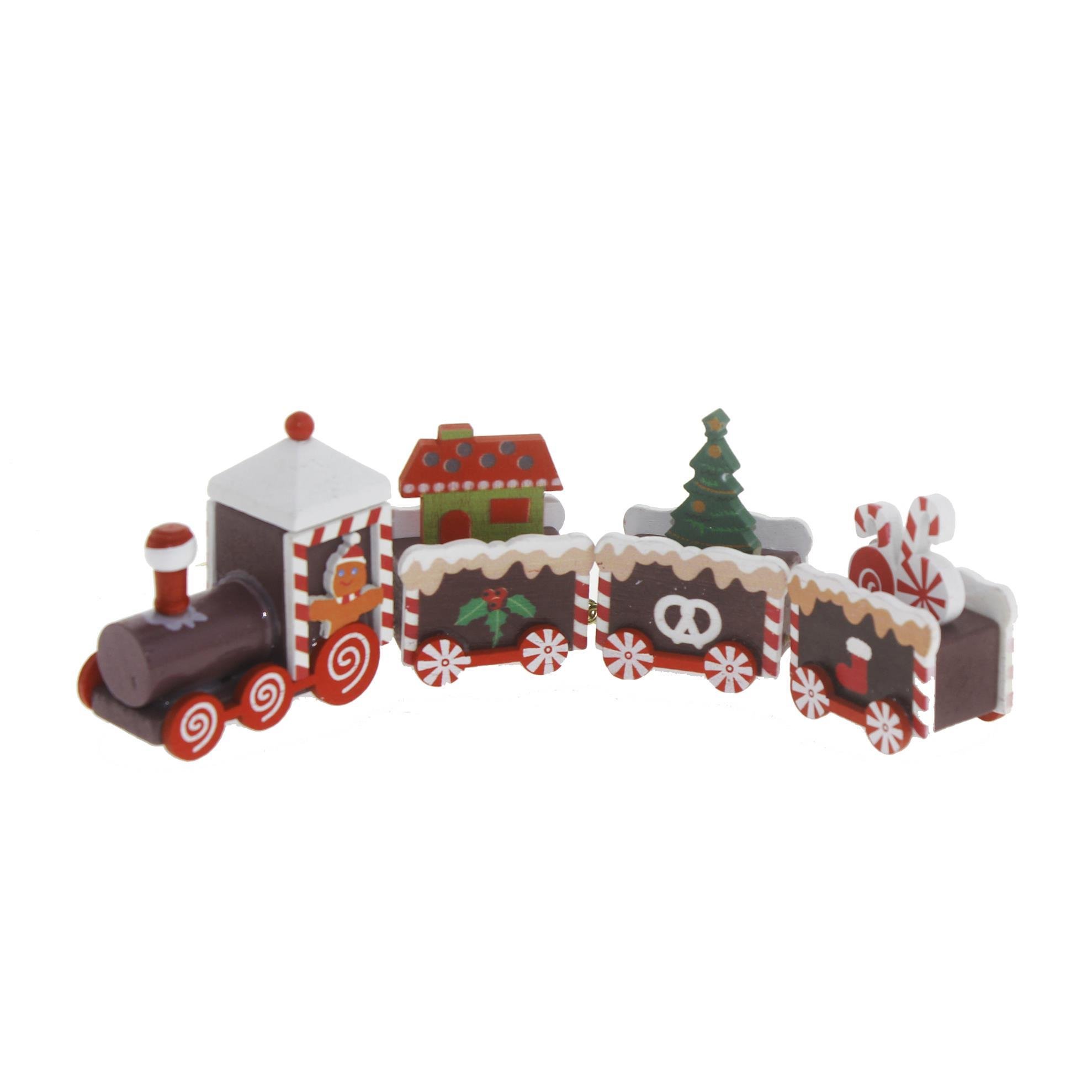 Ahşap malzemeden yapılmış küçük yılbaşı trenidir.