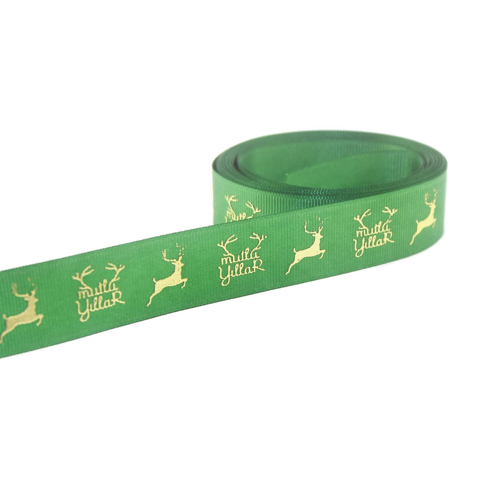 2,5cm x 5metre Kumaş Grogren Kurdela Parlak Geyikli Yılbaşı (MDM03324)