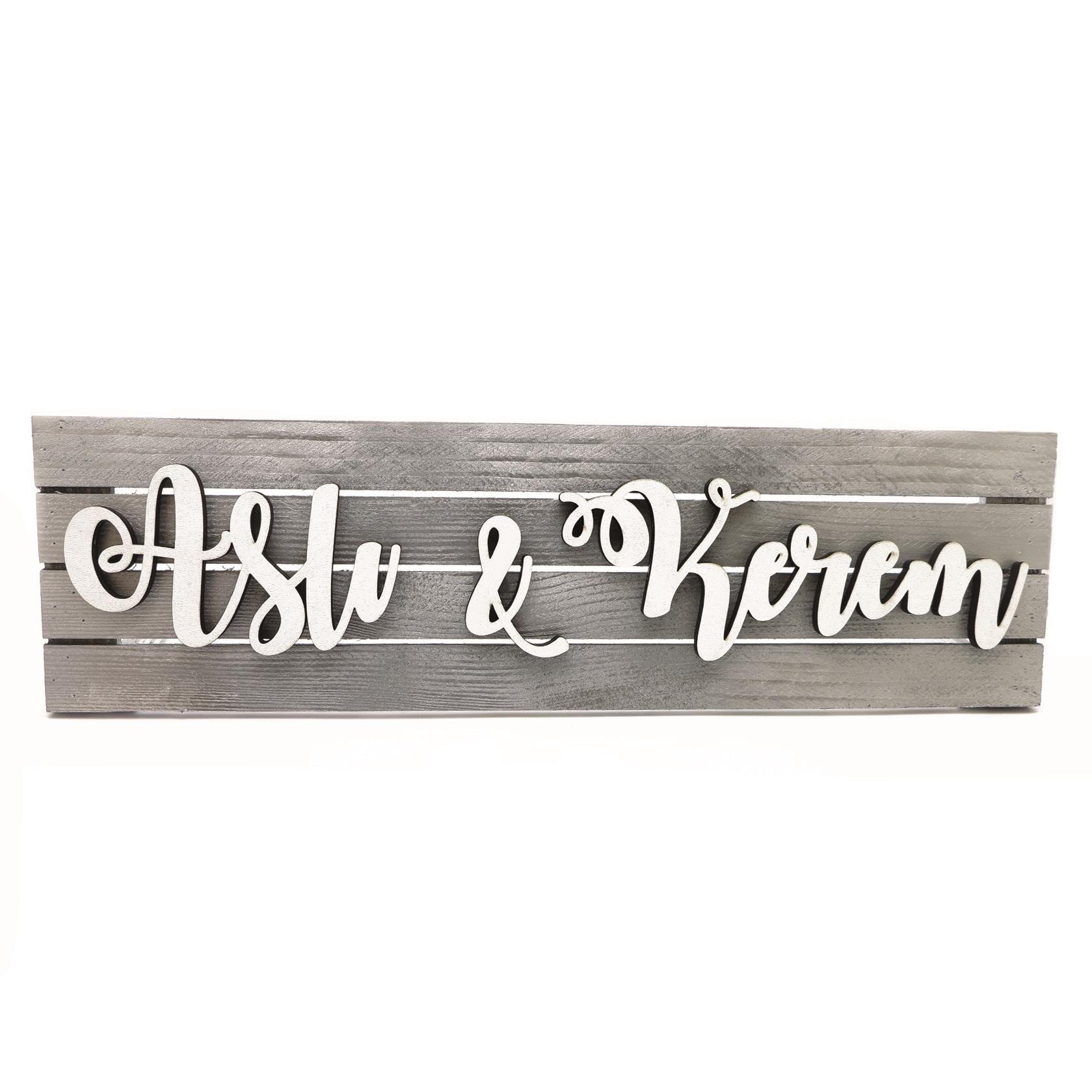 45x13cm Ahşap İsimlik Masa Süsü Gri (LR00022)