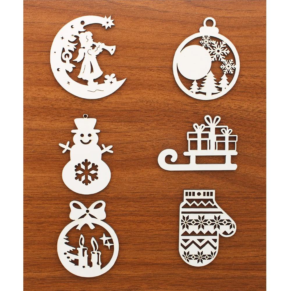 6 Adet 8cm Yılbaşı Ağaç Süsü Ahşap Karışık Model Boyanabilir (LR00197)