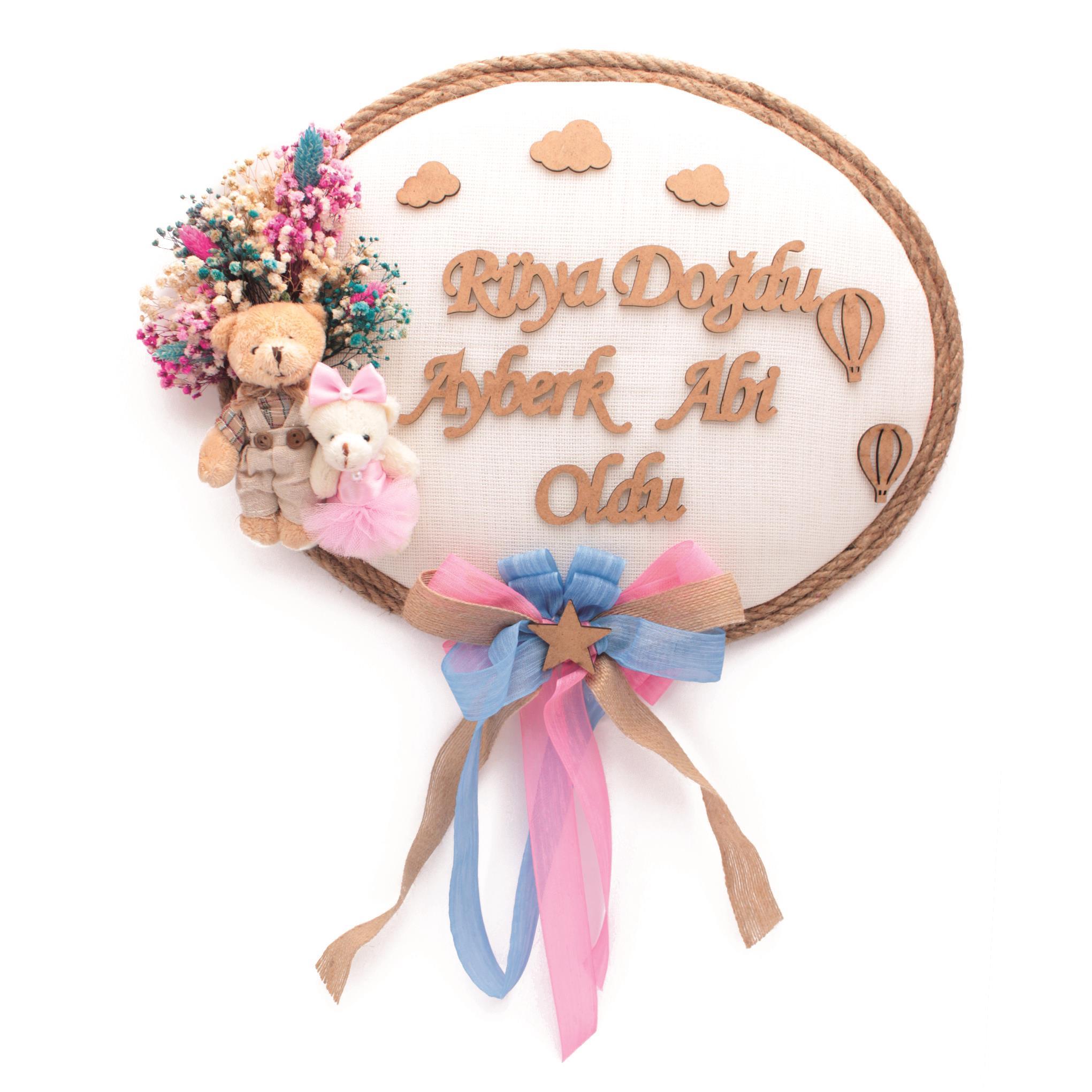 Bebek Kapı Süsü İki Ayıcıklı Ahşap İsimli